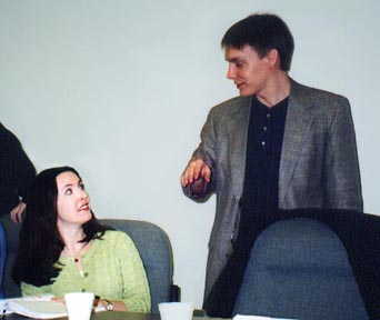 Producer/Director Andrew Seltz trades some notes with Reader Melissa Bonaguide.