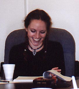 Sarah Gifford enjoying a scene during the reading. If the audience has half as much fun, we're golden.